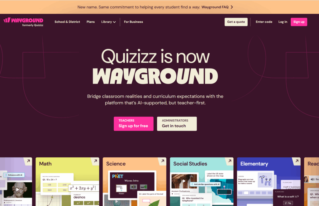 Tak jak wspomnieliśmy na początku, nie wszyscy uczniowie muszą pisać ten sam sprawdzian. Ponieważ każdy z nich może mieć różne problemy. W przypadku z uczniami z SPE świetnie sprawdza się znany wszystkim Quizizz, który od niedawna zmienił nazwę na Wayground. Bez względu na zmianę nazwy, wszystkie korzyści tego narzędzia zostały takie same.